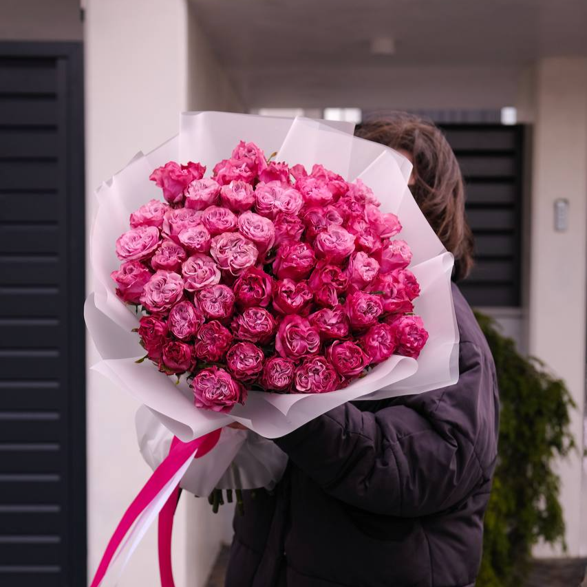Нежный букет в сиреневых оттенках не только повысит ей настроение, но и подарит улыбку на целый день. *Наши флористы соберут для вас максимально похожий букетик/композицию.