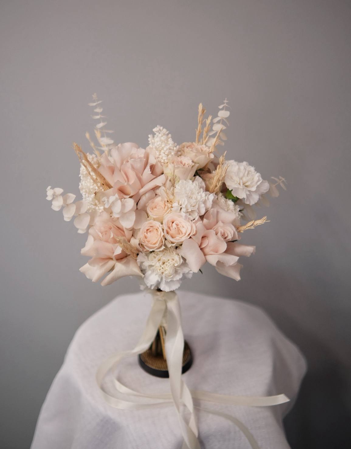 В этой композиции собралась вся нежность на свете: от розовой гвоздики до персиковой кустовой розы *Наши флористы соберут для вас максимально похожий букетик/композицию.