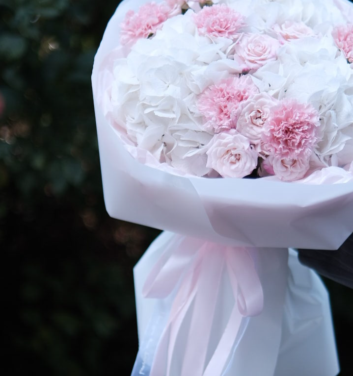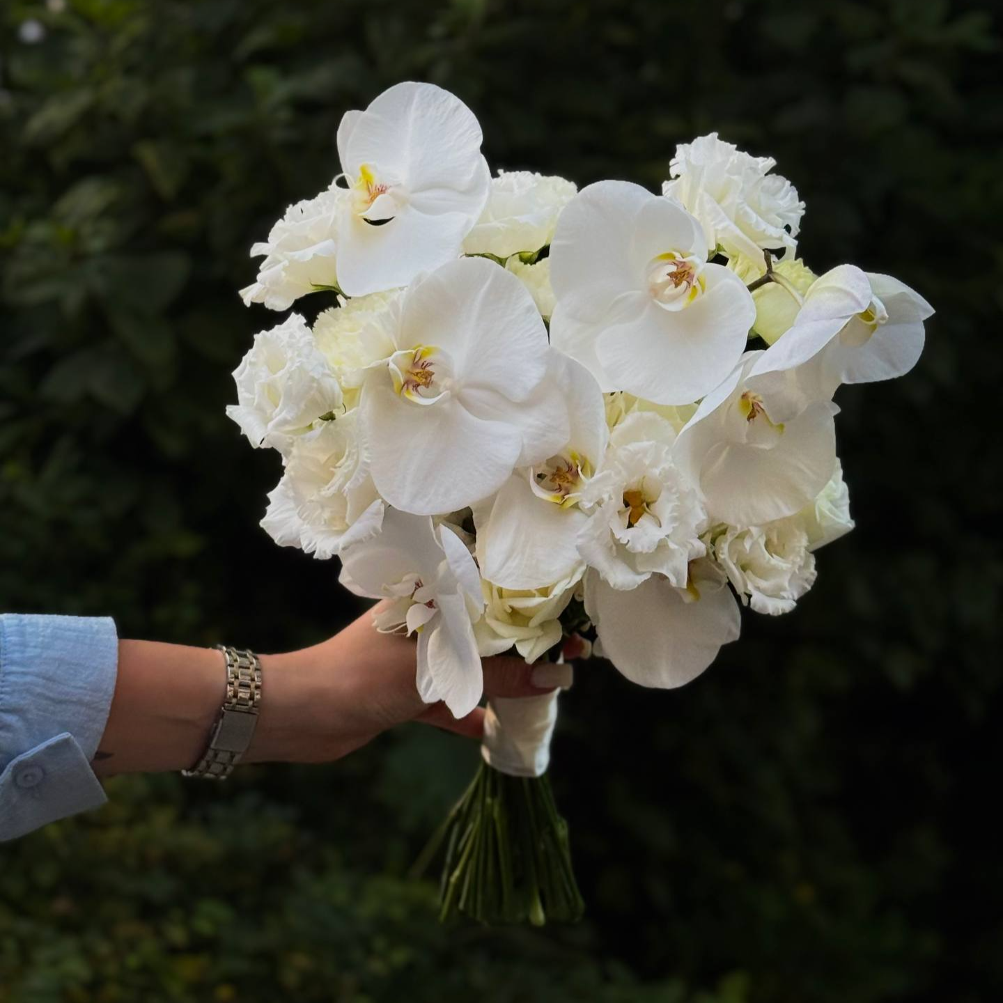 Букет в белых тонах с яркими акцентами обычно ассоциируется с элегантностью, чистотой и нежностью. *Наши флористы соберут для вас максимально похожий букетик/композицию.