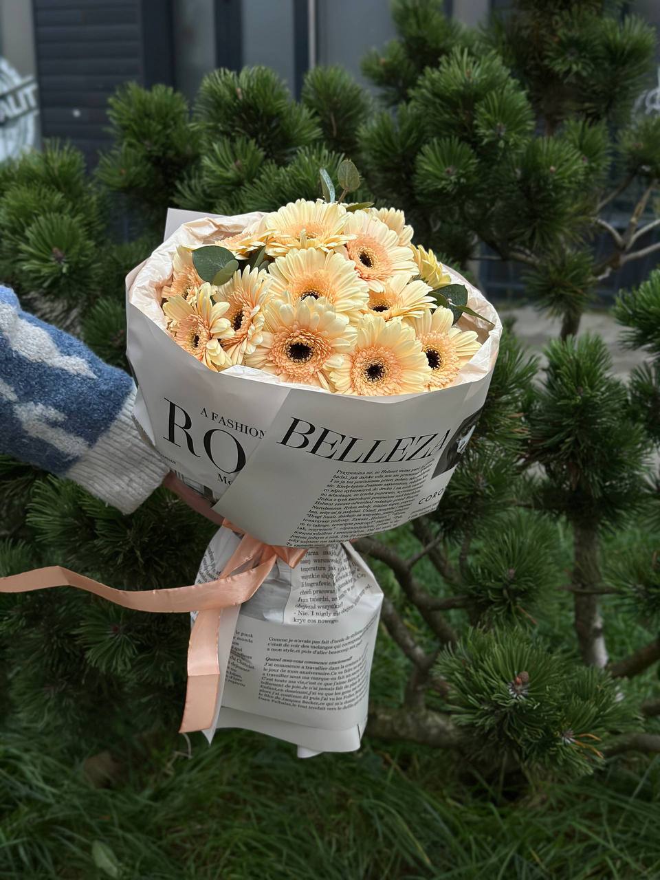 Эта композиция олицетворением любви к свободе, легкости и жизнеутверждающего настроения. *Наши флористы соберут для вас максимально похожий букетик/композицию.