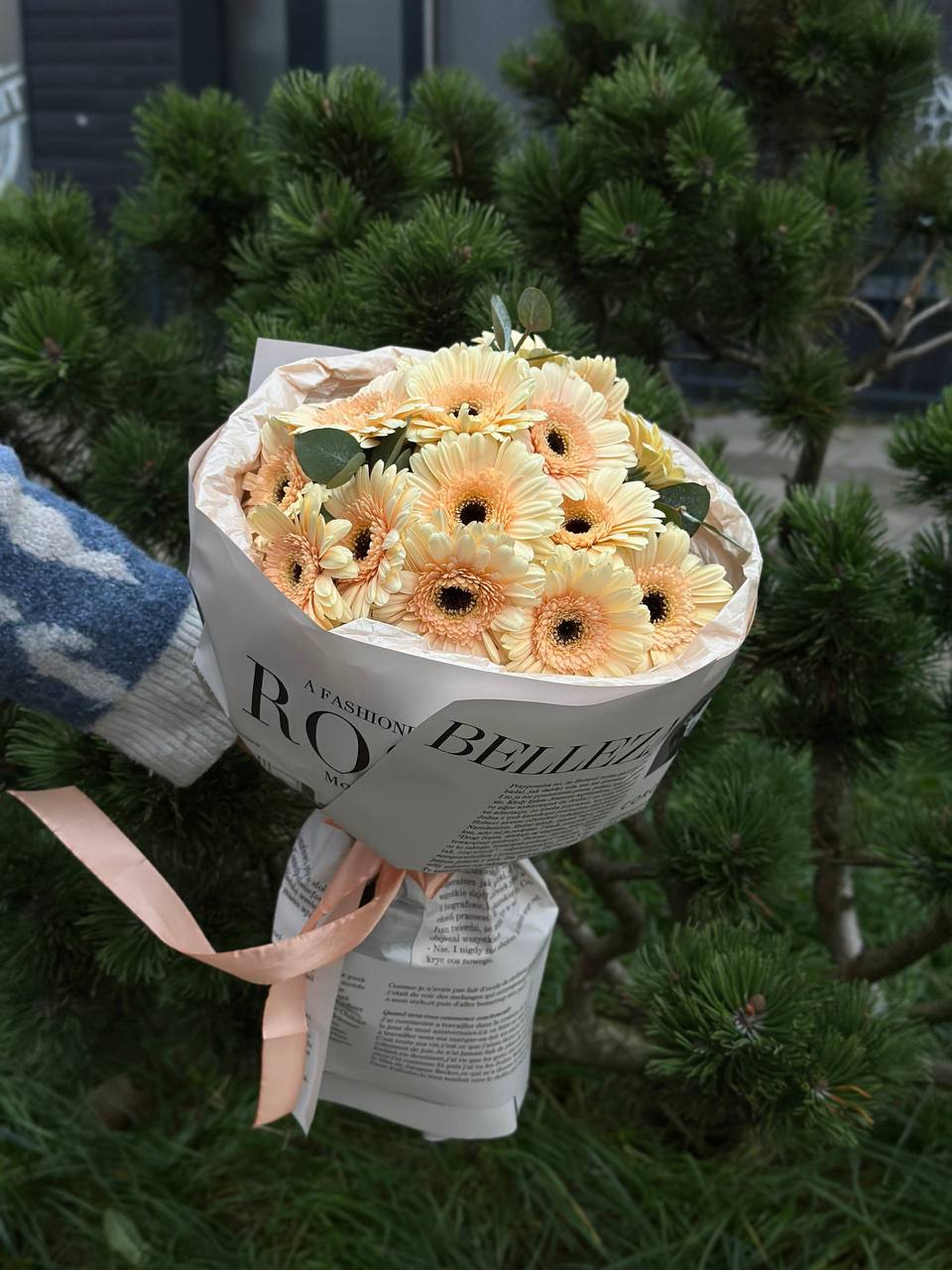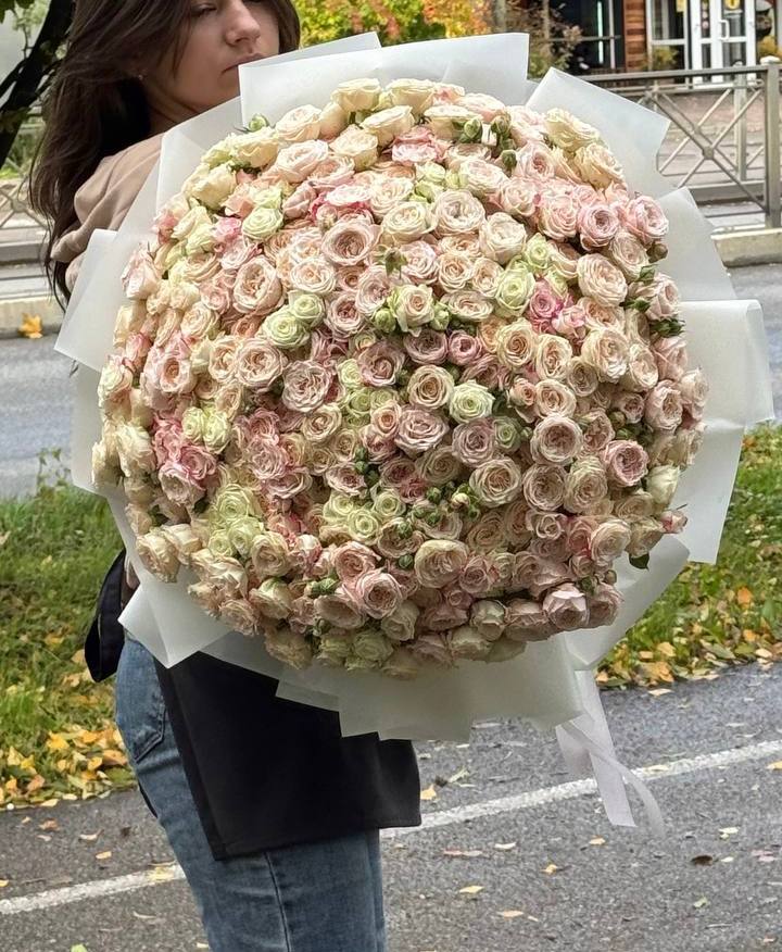 В этой композиции собралась вся нежность на свете: от розовой гвоздики до персиковой кустовой розы *Наши флористы соберут для вас максимально похожий букетик/композицию.